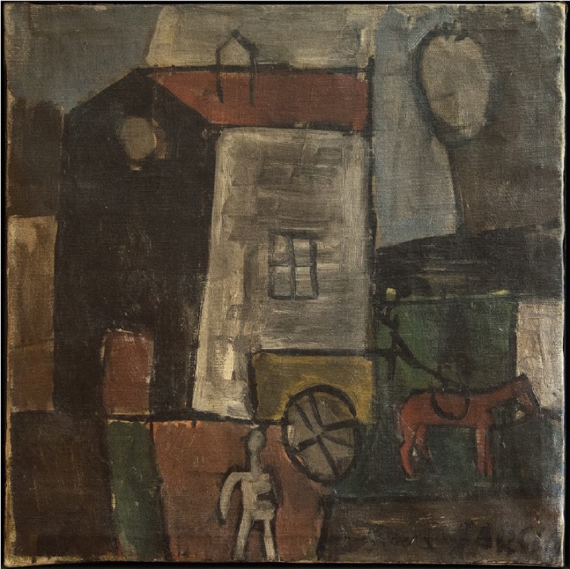 Joaquín Torres García y el Universalismo Constructivo: La Enseñanza del arte en Uruguay. Madrid: Ediciones de Cultura Hispánica, 1990, ill. p. 59, as Casa con fachada negra, Dimensions as 49 x 40.5
